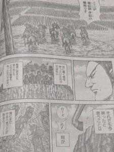 そして青華雲は飛信隊の弓部隊を見て悪くないと言い、部下からは飛信隊には蒼仁、蒼淡と言う兄弟の弓使いが居て七年前に金毛将軍が討たれているという説明を受けます。