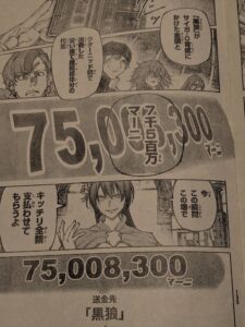サイガー0の移籍話をまとめるために移籍金の7500万8300マーニもの大金をこの場で黒狼に入金します。